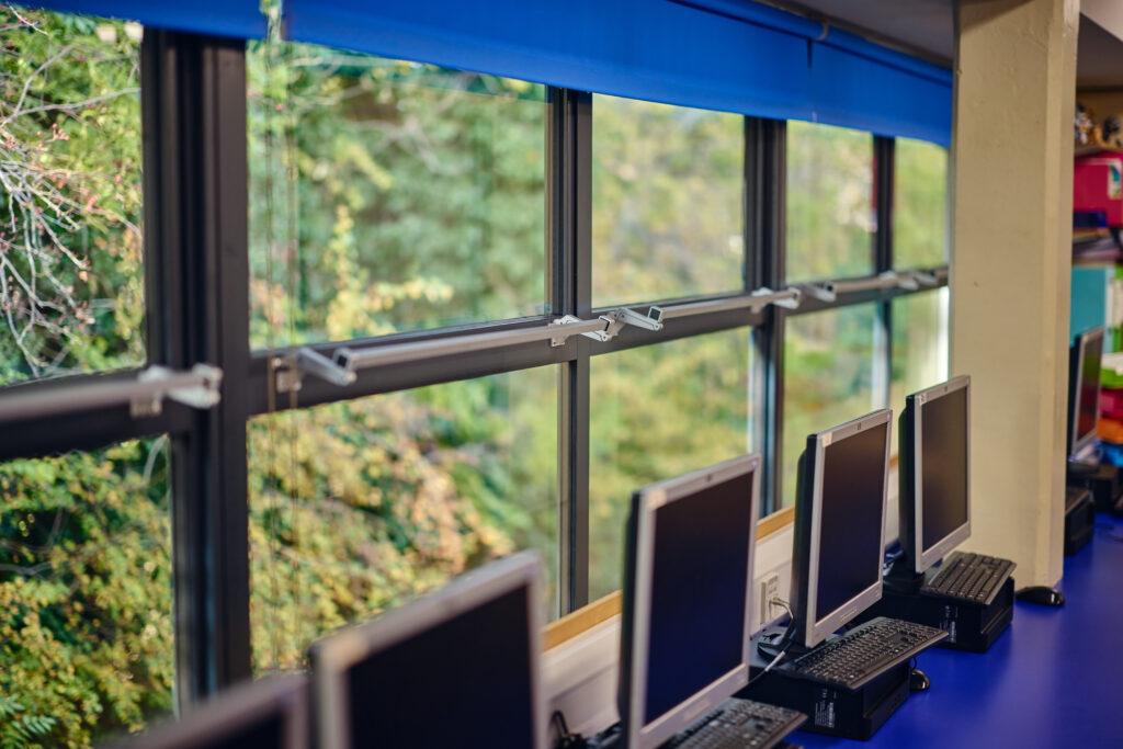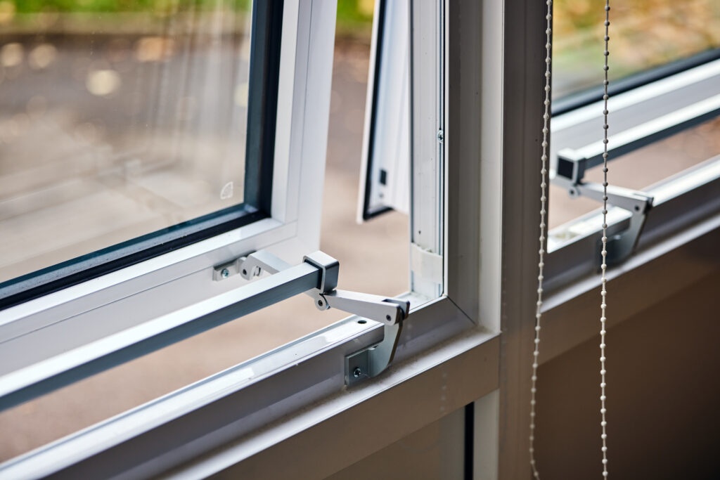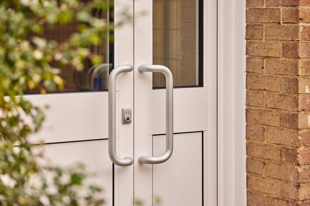 Given the high footfall and lively environment, durability was essential. We installed robust hardware including satin anodised pull handles and folding window openers with built-in safety restrictions – ensuring both longevity and pupil safety.